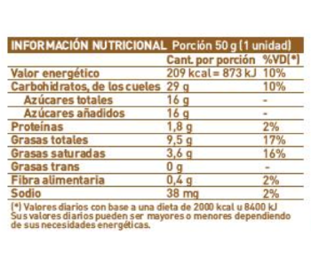 Ingredientes: Dulce de leche, fécula de maíz, baño cobertura blanco, aceite vegetal interesterificado, azúcar, harina de arroz, agua, harina de nuez, mezcla de emulsionantes, JMAF, cacao en polvo, sal, goma xántica, sabor vainilla, sabor naranja, CONS: INS (202, 282), EMU: INS 322, ACREG: INS (500ii, 503ii). CONTIENE LECHE, NUEZ Y DERIVADOS DE SOJA. PUEDE CONTENER ALMENDRA, AVELLANA, HUEVO, MANÍ Y SULFITOS.